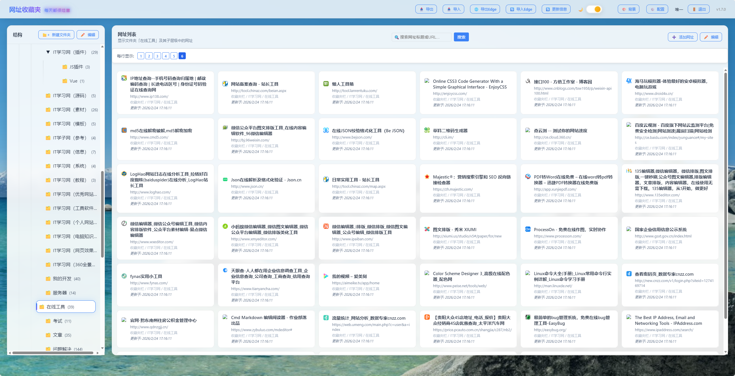 添加、编辑、删除网址书签,支持批量操作